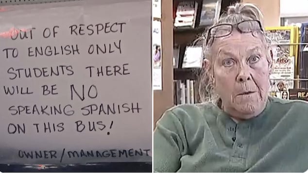 ‘Out of respect to English-only students, there will be no speaking Spanish on this bus,’ the handwritten note read. It was signed by ‘ownership/management.’